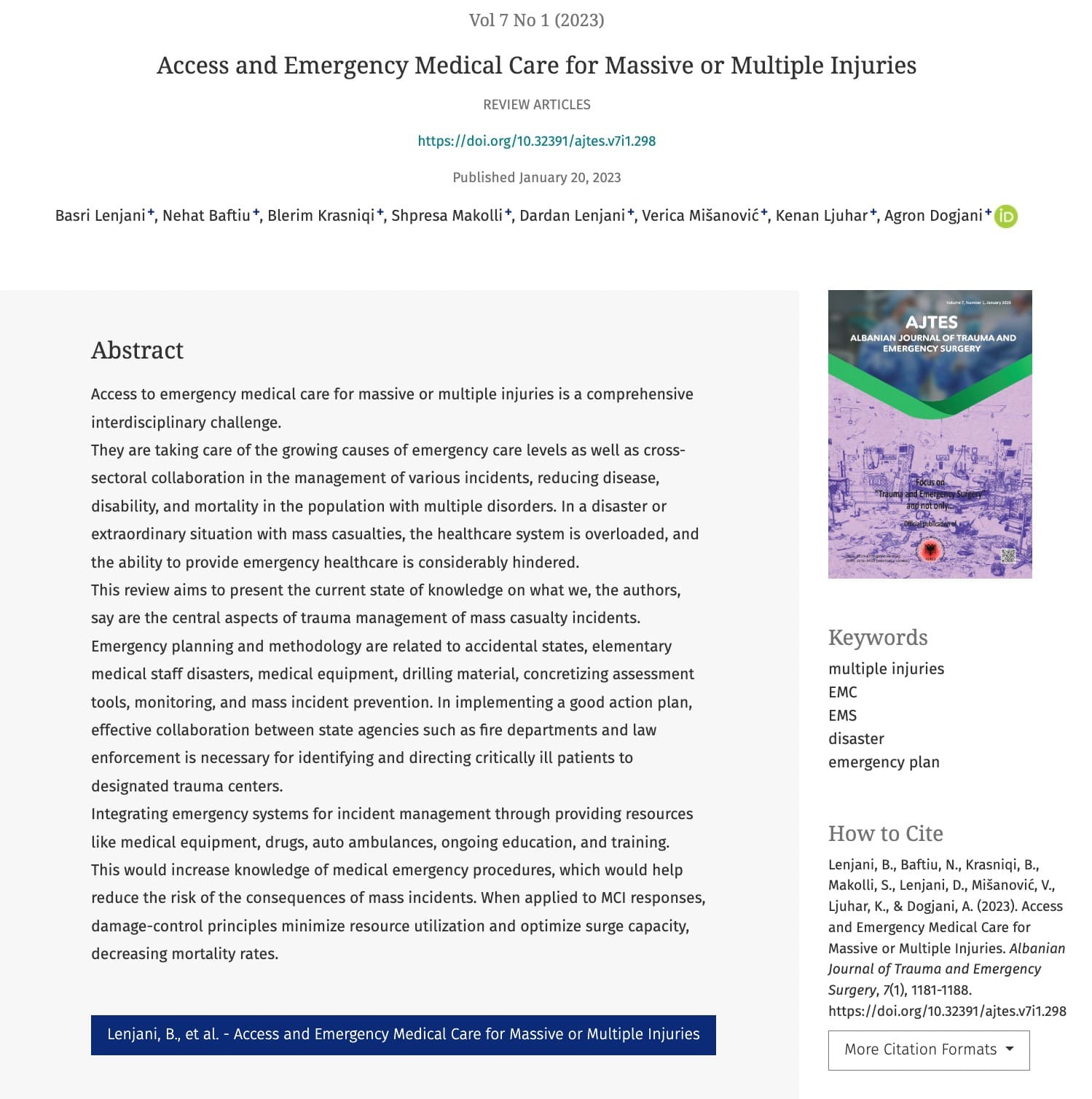 Access to emergency medical care for massive or multiple injuries is a comprehensive interdisciplinary challenge.