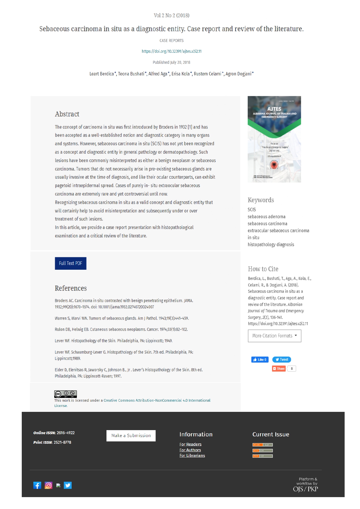 Keywords: SCIS, sebaceous adenoma, sebaceous carcinoma, extraocular sebaceous carcinoma in situ, histopathology diagnosis.