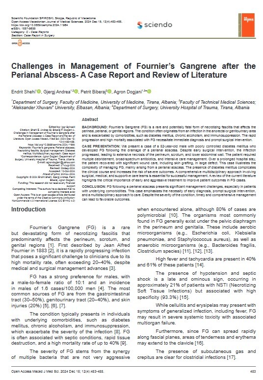 Conclusion: FG following a perianal abscess presents significant management challenges, especially in patients with underlying comorbidities. This case emphasizes the necessity of early diagnosis, prompt surgical intervention, and a multidisciplinary approach to care. Despite the severity of the condition, timely and comprehensive management can lead to favorable outcomes.