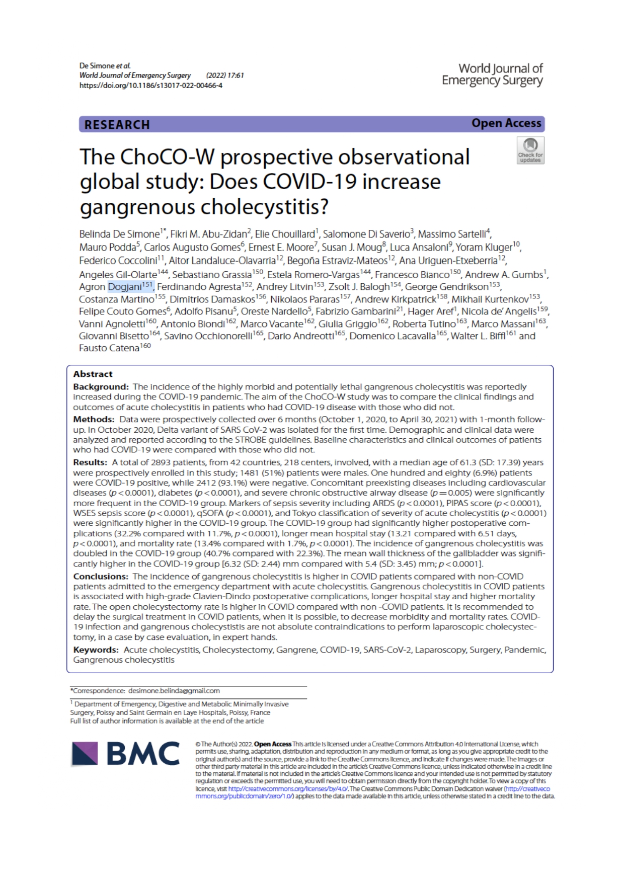 The aim of the ChoCO-W study was to compare the clinical findings and outcomes of acute cholecystitis in patients who had COVID-19 disease with those who did not.