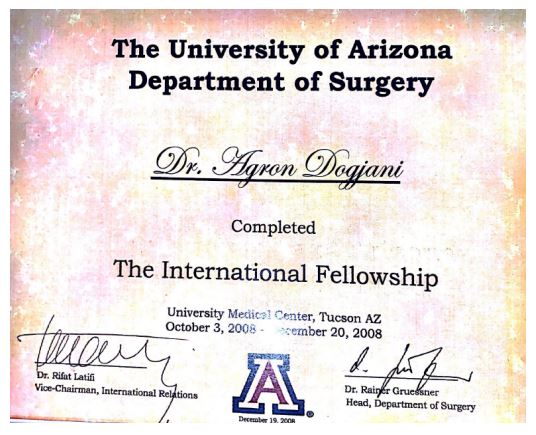2002 - 2003 - " Fellowship për kirurgjinë e Traumës"