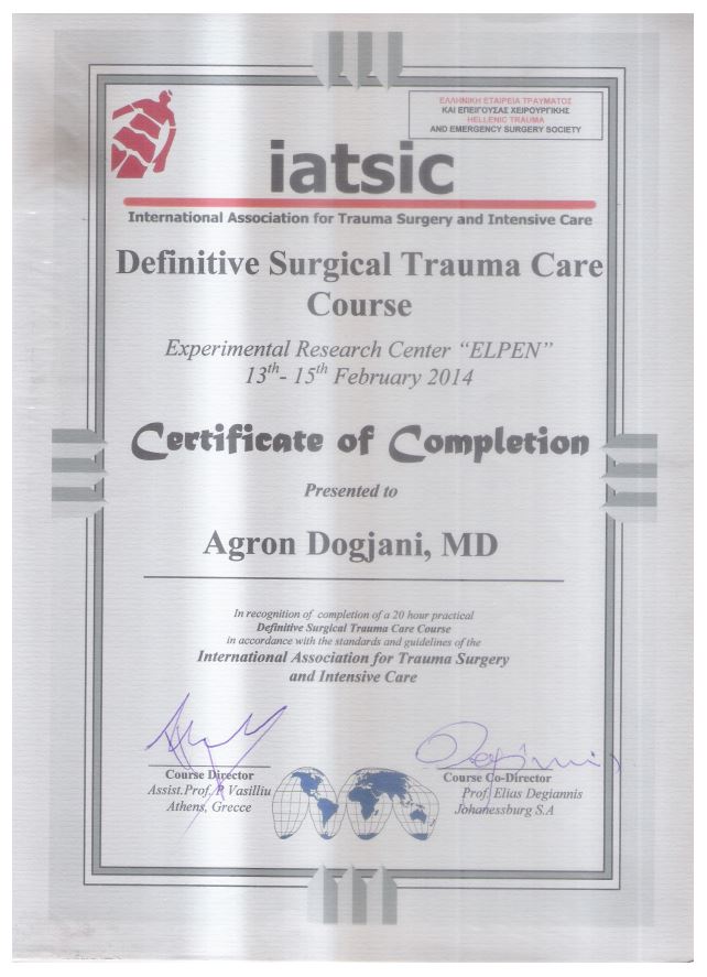 2014 - Kurs në DSTC (Definitive Surgical Trauma Course).